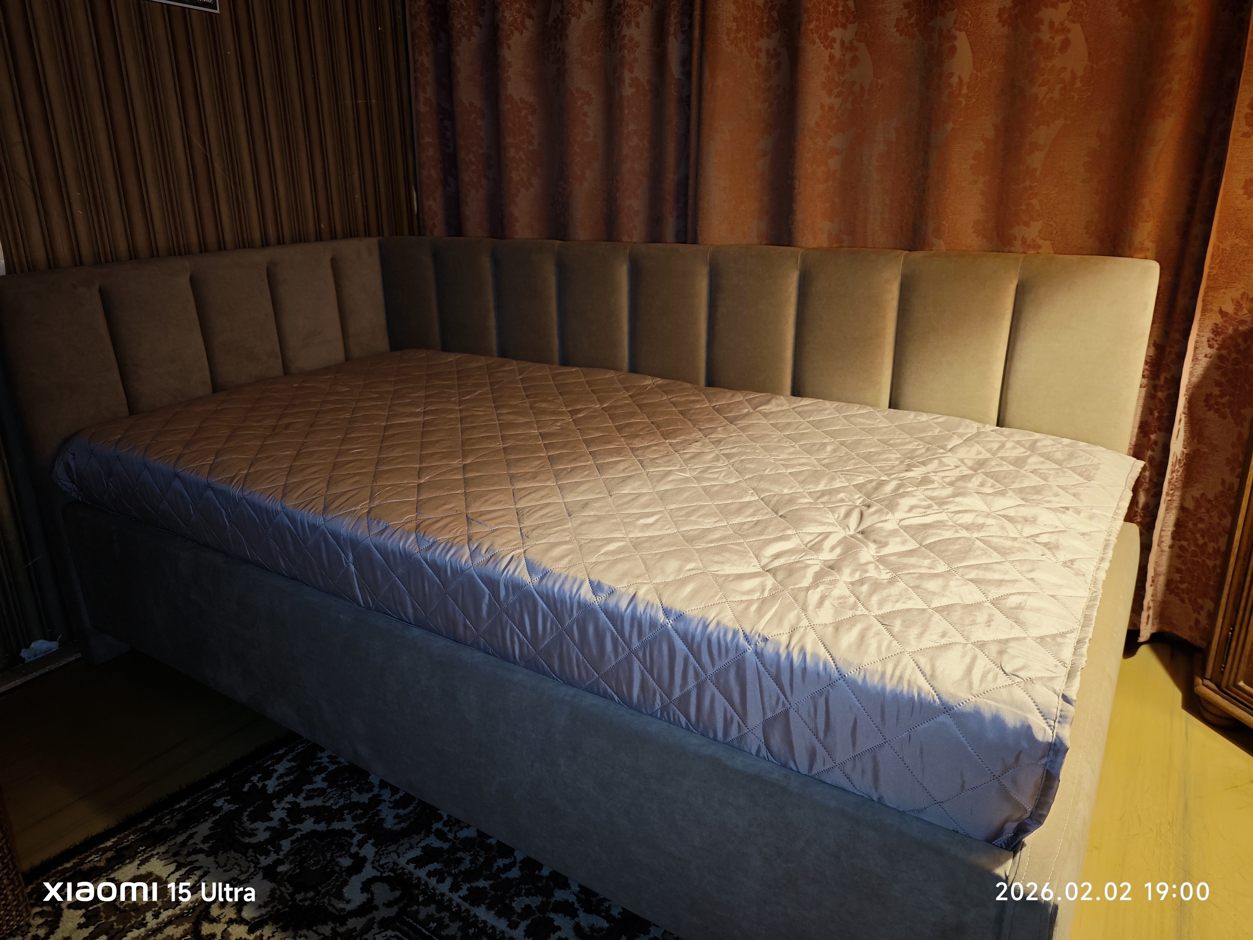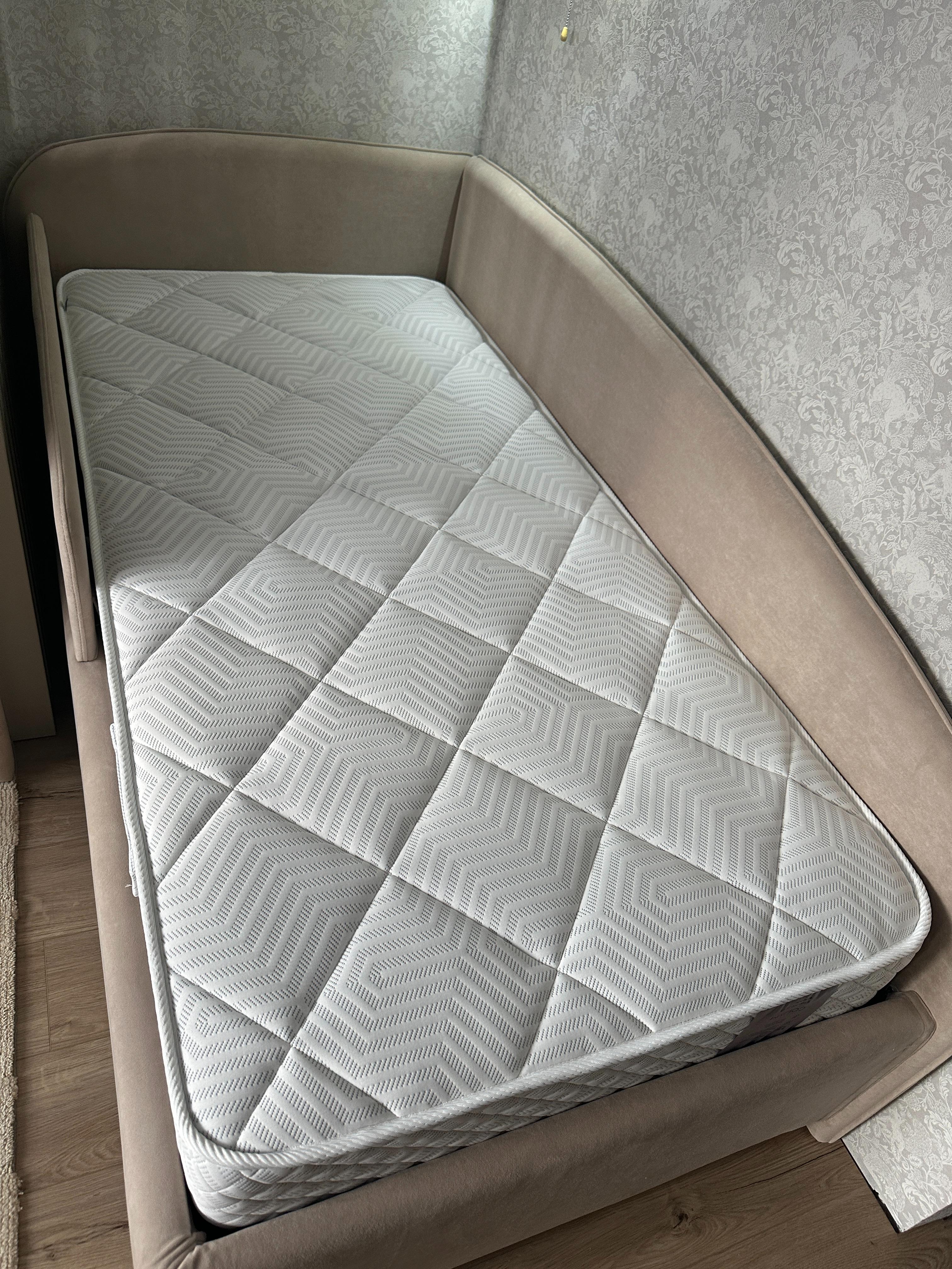 Кровать очень стильно выглядит, прям как из Pinterest, давно такую искала. Долго выбирала и остановилась на этом экземпляре. В приоритете был подъемный механизм, большой ящик, мягкая основа. И большая спинка со стороны головы. Отличная ткань, всё крепкое и надёжное. Комплектом к кровати взяли матрас. Просто идеальный, прошит аккуратно, чистый, соответствует всему заявленному, стал любимым местом семьи. Этикетка производителя на месте, всем советую такой матрас, совсем не пожалела, что купила такое спальное место.